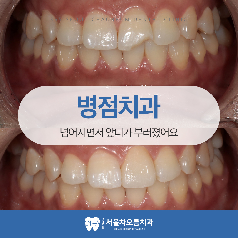 일주일 전에 넘어지면서 위에 앞니가 깨져